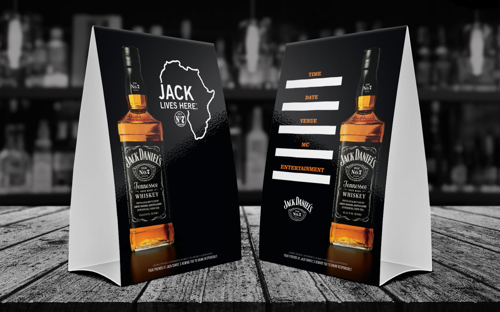 A selection of artwork created for Jack Daniel's Old No. 7 for use in various countries across Africa. Jack Daniel's Old No. 7 is the flagship product in the Jack Daniel’s family of brands.
