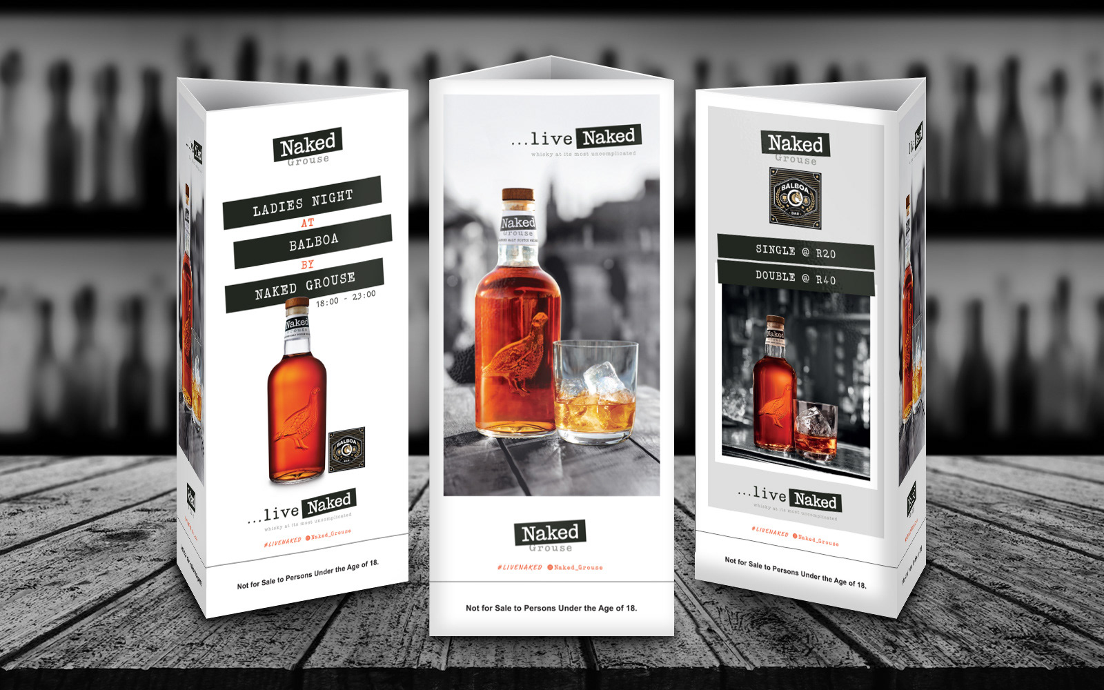A selection of artwork created for Naked Grouse South Africa. We create various design and branding elements for Naked Grouse including in-store promotional items and event advertising.